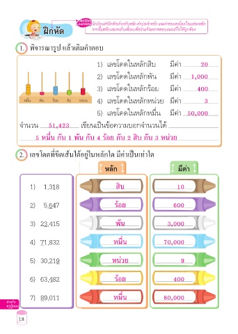 นักเรียนทำาฝึกหัดเกี่ยวกับหลัก ค่าประจำาหลัก และค่าของเลขโดดในแต่ละหลัก