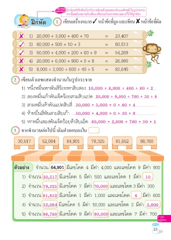 นักเรียนทำาฝึกหัดเกี่ยวกับการเขียนตัวเลขแสดงจำานวนห้าหลักในรูปกระจาย