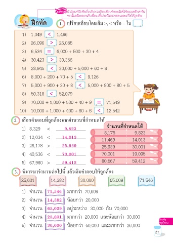 นักเรียนทำาฝึกหัดเกี่ยวกับการเปรียบเทียบจำานวนนับที่มีจำานวนหลักเท่ากัน