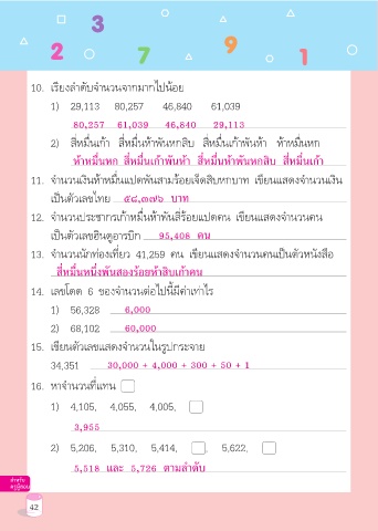 12. จำานวนประชากรเก้าหมื่นห้าพันสี่ร้อยแปดคน เขียนแสดงจำานวนคน