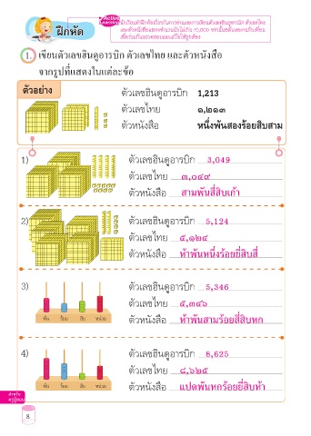 ฝึกหัด และตัวหนังสือแสดงจำานวนนับไม่เกิน 10,000 จากนั้นสลับผลงานกับเพื่อน