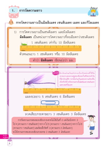 1.1 การวัดความยาวเป็นมิลลิเมตร เซนติเมตร เมตร และก ิโลเมตร