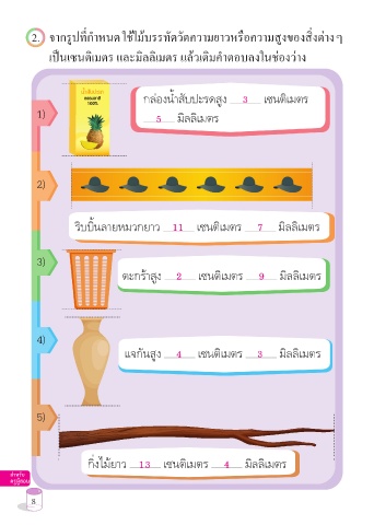 เป็นเซนติเมตร และมิลลิเมตร แล้วเติมคำาตอบลงในช่องว่าง