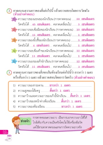 2. คาดคะเนความยาวของสิ่งต่อไปนี้ แล้วตรวจสอบโดยการวัดจริง