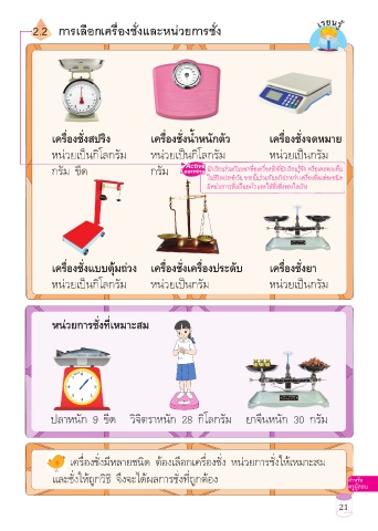 2.2 การเลือกเครื่องชั่งและหน่วยการชั่ง เรยนร