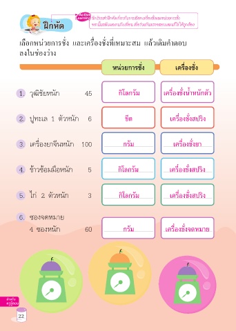 เลือกหน่วยการชั่ง และเครื่องชั่งที่เหมาะสม แล้วเติมคำาตอบ