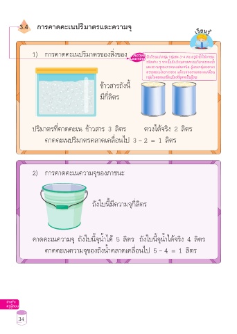 คาดคะเนความจุ ถังใบนี้จุน้าได้ 5 ลิตร ถังใบนี้จุน้าได้จริง 4 ลิตร