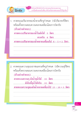 1. คาดคะเนปริมาตรของน้าตามที่ครูกำาหนด ว่ามีปริมาตรกี่ลิตร