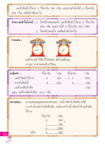 ทําความเข้าใจโจทย์ : 1. โจทย์กำาหนดอะไร (แม่ค้าต้มถั่วไว้ขาย 5 กิโลกรัม