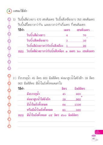 ตอบ มีน้าในถังทั้งหมด ๘๕ ลิตร ๕๐๐ มิลลิลิตร
