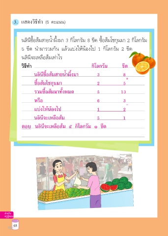 ตอบ นลินีจะเหลือส้ม ๕ กิโลกรัม ๑ ขีด