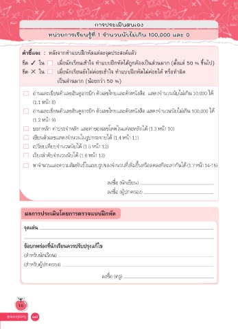 ขีด 3 ใน เมื่อนักเรียนเข้าใจ ทำาแบบฝึกหัดได้ถูกต้องเป็นส่วนมาก (ตั้งแต่ 50 % ขึ้นไป)