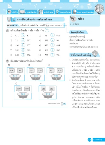 จุดประสงค์ 1.8 : เปรียบเทียบจำานวนนับไม่เกิน 1,000 ได้ ( น. 26-27, 29-30, 33)