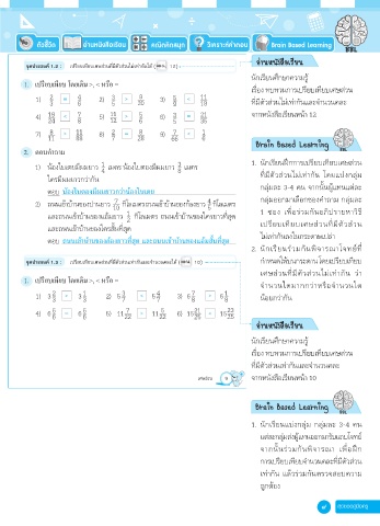 จุดประสงค์ 1.2 : เปรียบเทียบเศษส่วนที่มีตัวส่วนไม่เท่ากันได้ ( น. 12)