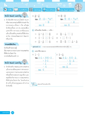 นักเรียนศึกษาความรู้ จุดประสงค์ 1.6 : หาผลบวกและผลลบของเศษส่วนที่มีตัวส่วนไม่เท่ากันได้ ( น. 16)
