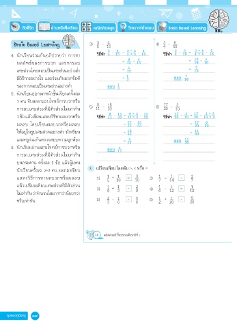 4. นักเรียนร่วมกันอภิปรายว่า การหา วิธีทำ� 5 15 3 × 3 - วิธีทำ� 4 - = 12 -