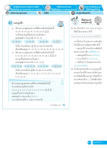 ดังนั้น จำานวนที่แทน คือ 10 และ 15 ตามลำาดับ 19. นักเรียนช่วยกันพิจารณาแบบรูปซำ้า
