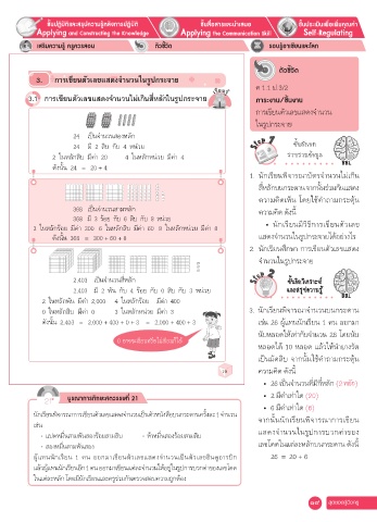ผ้แทนนักเรียน 1 คน ออกมาเขียนตัวเลขแสดงจ�านวนเป็นตัวเลขฮินดูอารบิก 26 = 20 + 6