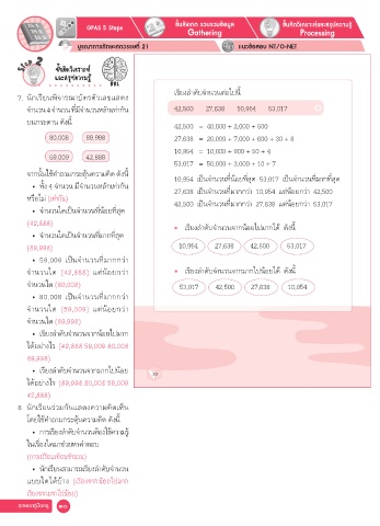 จากนั้นใช้ค�าถามกระตุ้นความคิด ดังนี้ 10,954 เป็นจำานวนที่น้อยที่สุด 53,017 เป็นจำานวนที่มากที่สุด