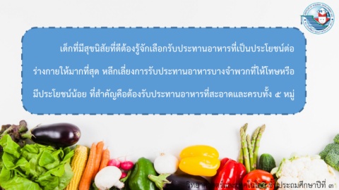 เด็กที่มีสุขนิสัยที่ดีต้องรู้จักเลือกรับประทานอาหารที่เป็นประโยชน์ต่อ