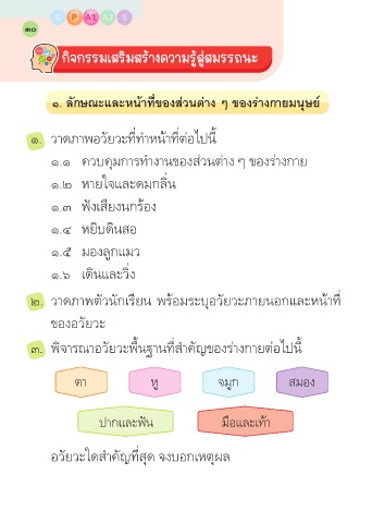 ๑. วาดภาพอวัยวะที่ทำาหน้าที่ต่อไปนี้