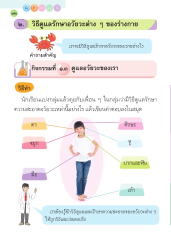 ความสะอาดอวัยวะเหล่านี้อย่างไร แล้วเขียนคำาตอบลงในสมุด