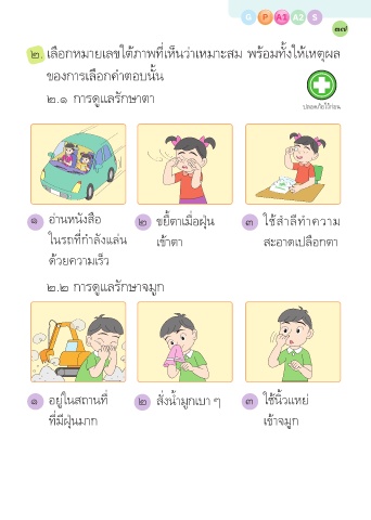 ๑ อ่านหนังสือ ๒ ขยี้ตาเมื่อฝุ่น ๓ ใช้สำาลีทาความ