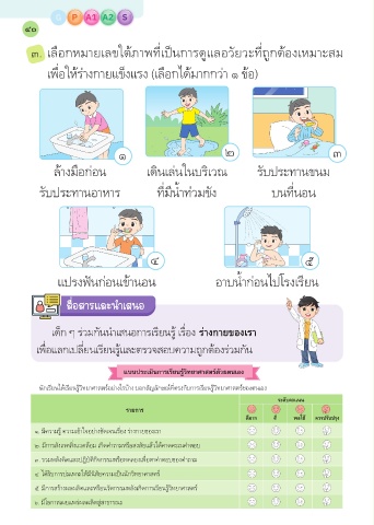 ๓. เลือกหมายเลขใต้ภาพท่เป็นการดูแลอวัยวะท่ถูกต้องเหมาะสม