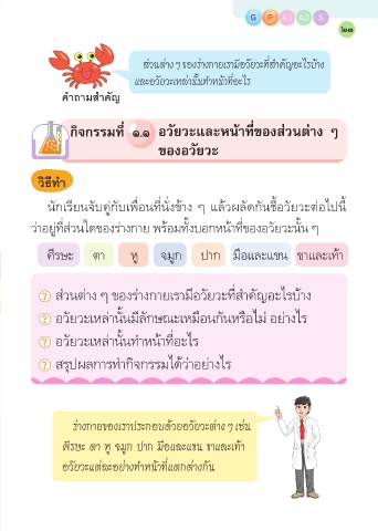กิจกรรมที่ ๑.๑ อวัยวะและหน้าที่ของส่วนต่าง ๆ