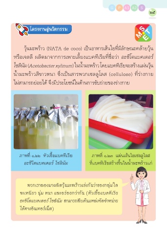 ไซลินัม (Acetobacter xylinum) ในนำ�มะพร้�ว โดยแบคทีเรียจะสร้�งแผ่นวุ้น