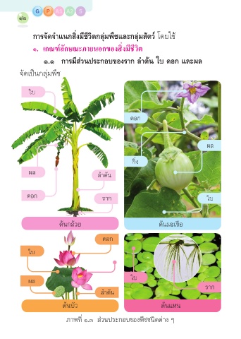 ๑.๑ การมีส่วนประกอบของราก ลำาต้น ใบ ดอก และผล