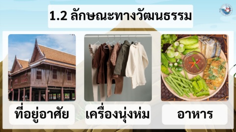 ั ั 1.2 ลกษณะทางวฒนธรรม ที่อยูู่อาศัย เครืองนงห่ม อาหาร ุ่ ่