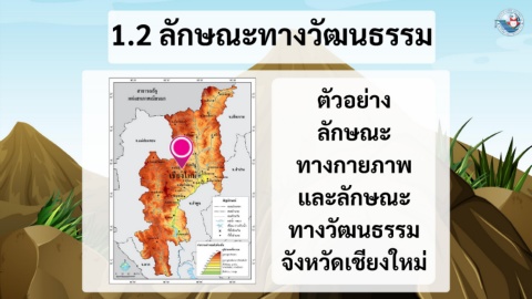 ั ั 1.2 ลกษณะทางวฒนธรรม ตวอย่าง ั ลกษณะ ั ทางกายภาพ และลกษณะ ั ั ทางวฒนธรรม ั ั จงหวดเชียงใหม่