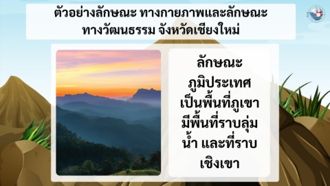 ั ั ตวอย่างลกษณะ ทางกายภาพและลกษณะ ั ั ั ั ทางวฒนธรรม จงหวดเชียงใหม่ ั ลกษณะ ภูมิประเทศ ้ เป็นพืนที่ภูเขา มีพืนที่ราบลุม ่ ้ ้ นา และที่ราบ เชิงเขา