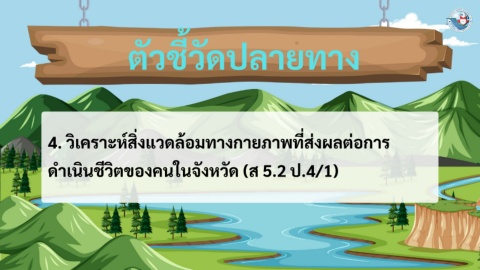 ตวชี้วดปลายทาง ั ั 4. วเคราะห์สิ่งแวดลอมทางกายภาพทีส่งผลตอการ ้ ่ ่ ิ ั ิ ิ ดาเนนชีวตของคนในจงหวด (ส 5.2 ป.4/1) ั