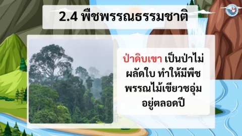 ิ 2.4 พืชพรรณธรรมชาต ิ ป่าดบเขา เป็นป่าไม่ ผลดใบ ทาให้มีพืช ั พรรณไม้เขียวชอม ุ่ อย่ตลอดปี ู