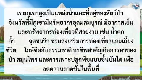 จงหวดที่มีภูเขามีทรัพยากรอดมสมบรณ มีอากาศเย็นํ