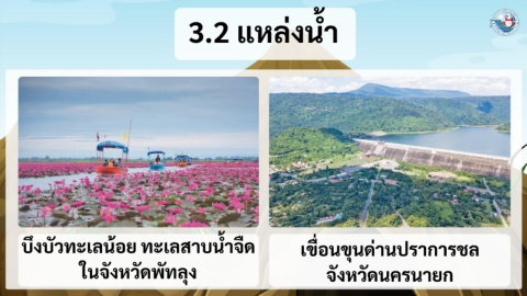 3.2 แหลงนา ่ ้ ้ ื บึงบัวทะเลนอย ทะเลสาบนาจด เขือนขนดานปราการชล ้ ่ ุ ่ ั ั ในจงหวดพัทลุง จงหวดนครนายก ั ั