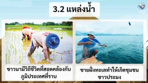 3.2 แหลงนา ่ ้ ้ ั ชาวนามีวถีชีวตที่สอดคลองกบ ชายฝั ่ งทะเลทาให้เกดชมชน ิ ิ ิ ุ ภูมิประเทศที่ราบ ชาวประมง