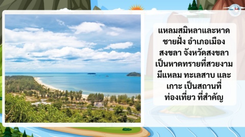 แหลมสมิหลาและหาด ชายฝ ่ ัง อาเภอเมือง ั ั สงขลา จงหวดสงขลา เป็นหาดทรายที่สวยงาม มีแหลม ทะเลสาบ และ เกาะ เป็นสถานที่ ั ทองเที่ยว ที่ส าคญ ่