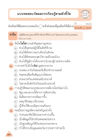 แบบทดสอบวัดผลการเรียนรู้ตามตัวชี้วัด