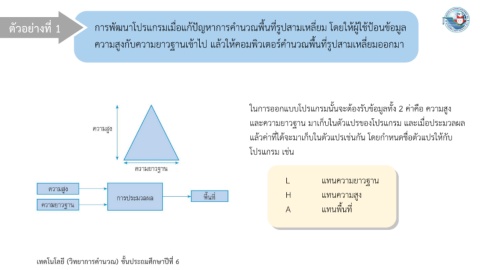 ความสูงกับความยาวฐานเข้าไป แล้วให้คอมพิวเตอร์ค านวณพื้นที่รูปสามเหลี่ยมออกมา