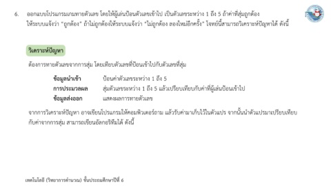 เทคโนโลยี (วิทยาการค านวณ) ชั้นประถมศึกษาปีที่ 6