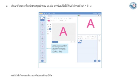 2. ส าเนาตัวละครเพื่อสร้างคอสตูมจ านวน 26 ตัว จากนั้นแก้ไขให้เป็นตัวอักษรตั้งแต่ A ถึง Z เทคโนโลยี (วิทยาการค านวณ) ชั้นประถมศึกษาปีที่ 6