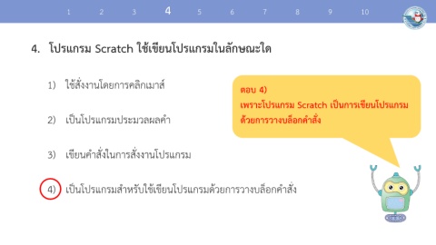 4. โปรแกรม Scratch ใช้เขียนโปรแกรมในลักษณะใด