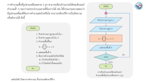 การค านวณพื้นที่รูปสามเหลี่ยมหลาย ๆ รูป สามารถเขียนโปรแกรมให้คอมพิวเตอร์ เริ่มต้น