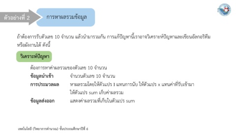 ตัวอย่างที่ 2 การหาผลรวมข้อมูล