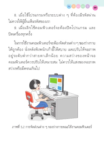 ภาพที่ 5.2 การจัดส่วนต่าง ๆ ของร่างกายขณะใช้งานคอมพิวเตอร์