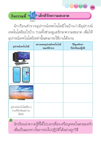 นักเรียนสำารวจอุปกรณ์เทคโนโลยีในบ้านว่ามีอุปกรณ์