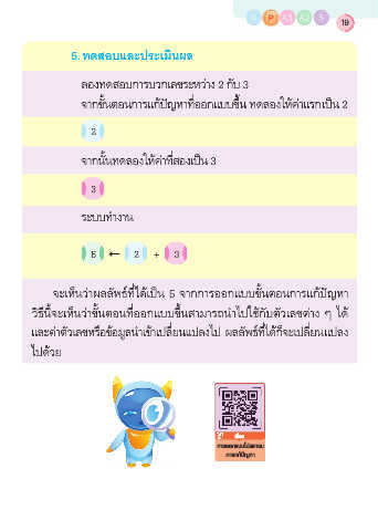 จะเห็นว่าผลลัพธ์ท่ได้เป็น 5 จากการออกแบบข้นตอนการแก้ปัญหา